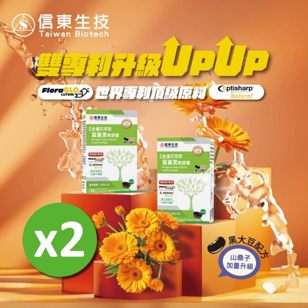 【信東生技】金盞花萃取葉黃素軟膠囊(黑大豆配方)2入組(60粒/盒)