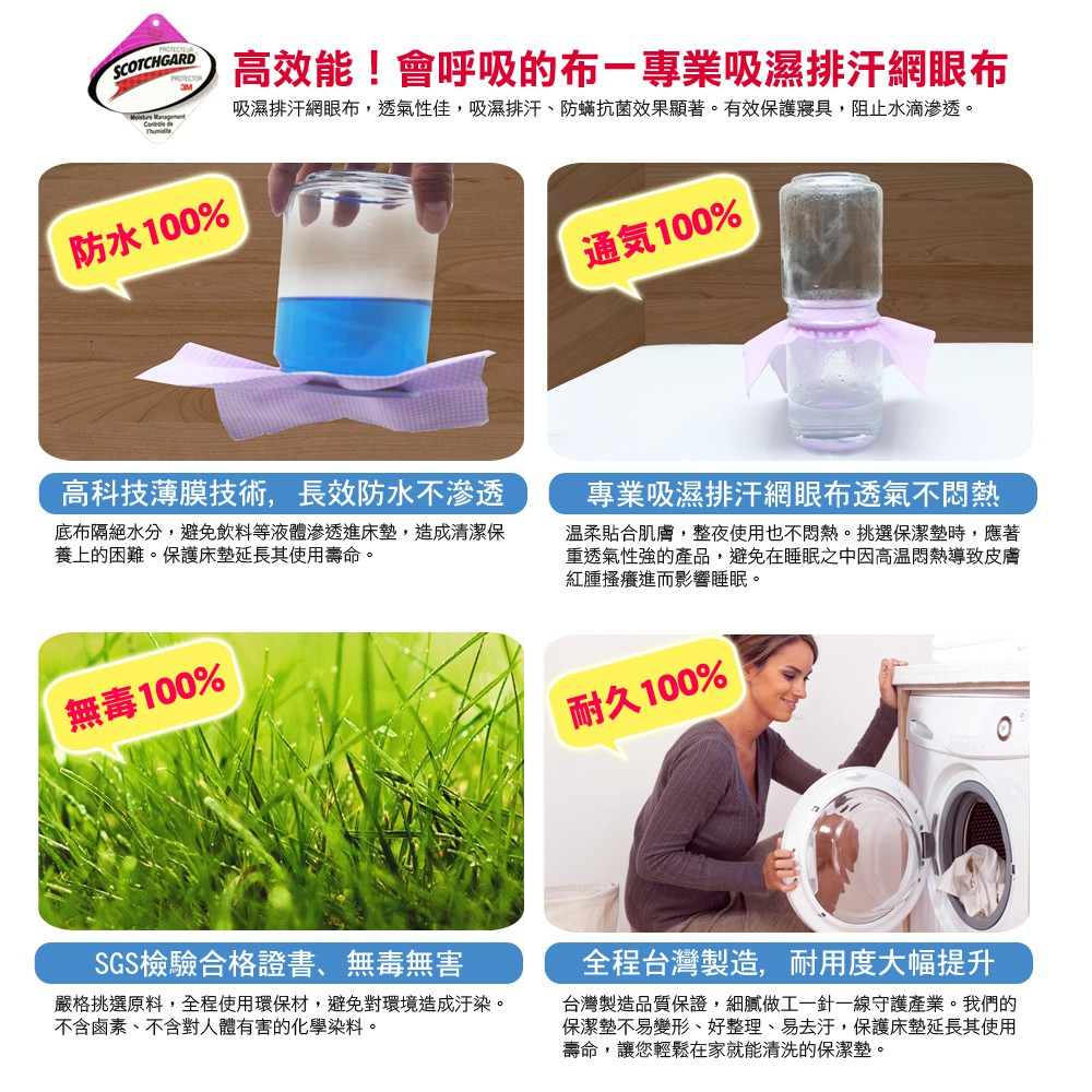 【寢城之戀】護理級防螨100%防水加高型床包式保潔墊 3M吸濕排汗處理 台灣製造 全尺寸 防水床包 防螨 床單 床包組