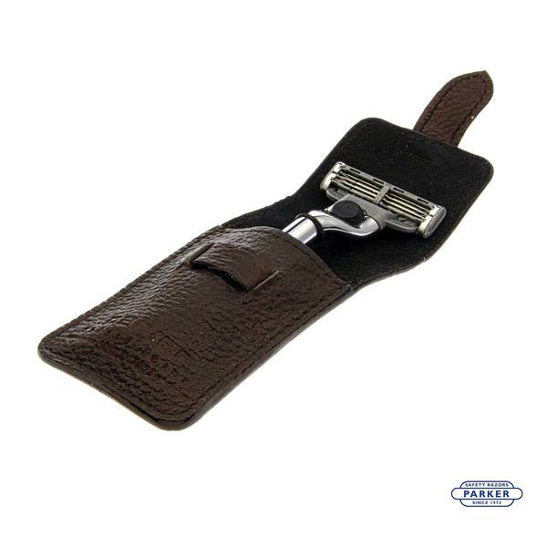 GOODFORIT / 美國Parker Mach3 Travel Razor袖珍旅行鍍鉻刮鬍刀具/水牛皮套