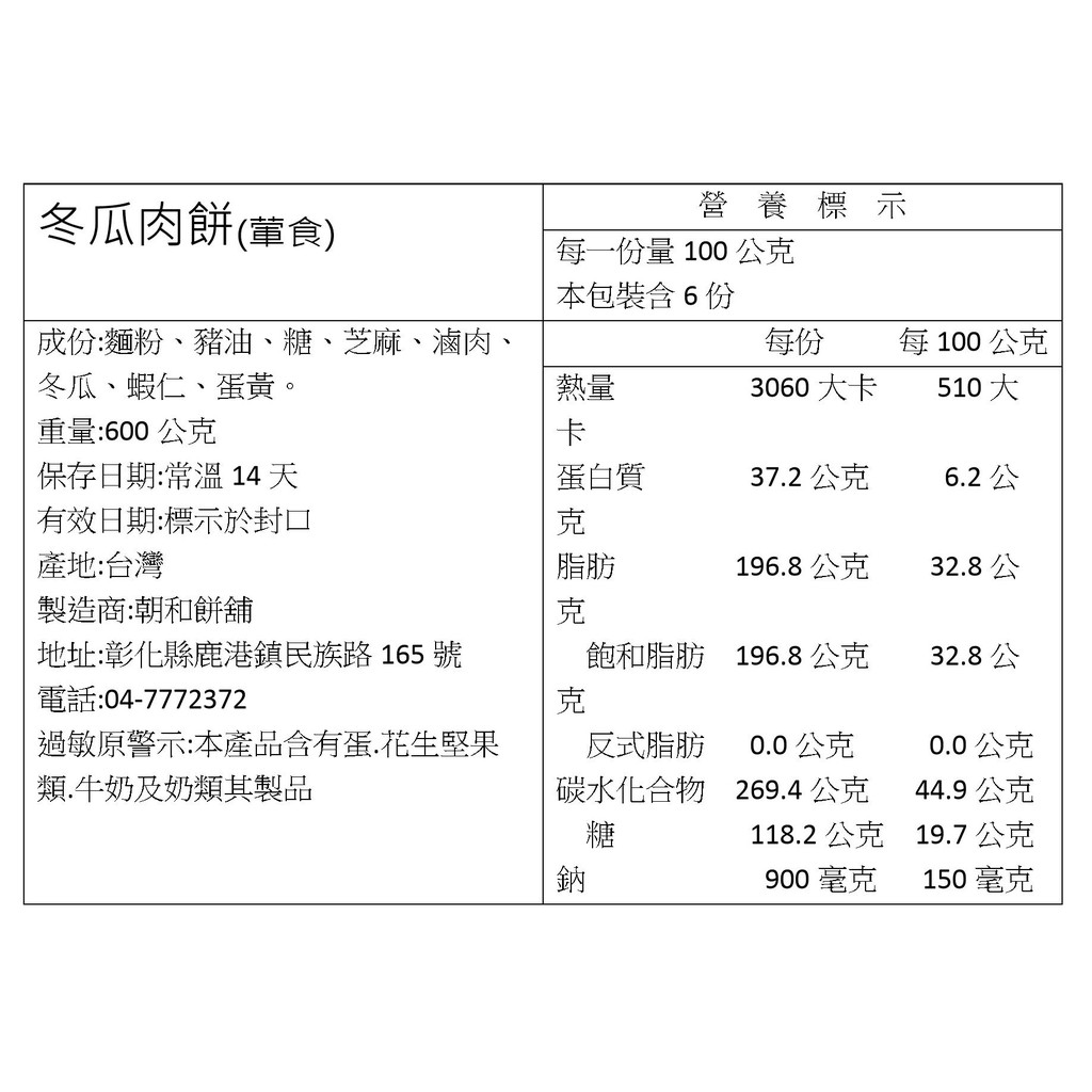 | 朝和餅舖 | 冬瓜肉餅 600g/盒 (中式喜餅 古早味大餅 狀元餅)