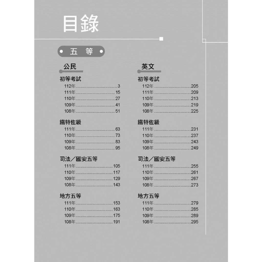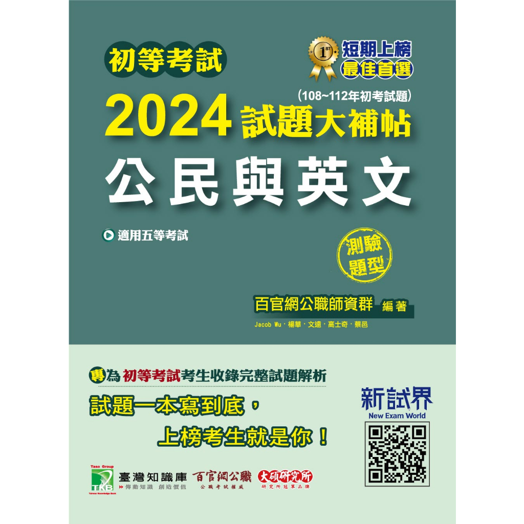 《大碩教育出版》初等考試2024試題大補帖【公民與英文】(108~112年初考試題)(測驗題型)[適用五等/初考、地方特考、鐵特佐級、司法/國安](CK2451)