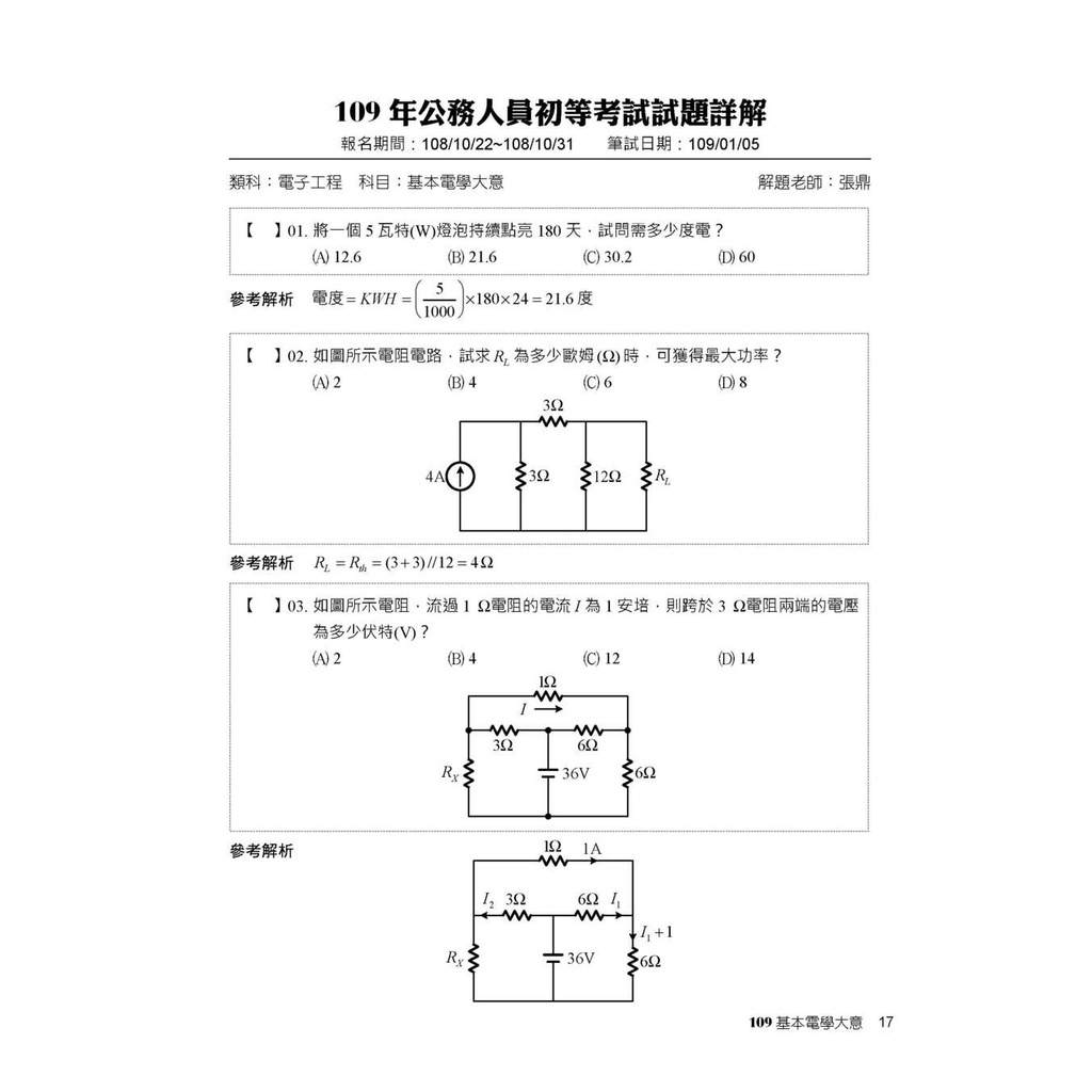 初等考試2022試題大補帖【基本電學大意】(107~110年初考試題)(測驗題型)《大碩教育出版》