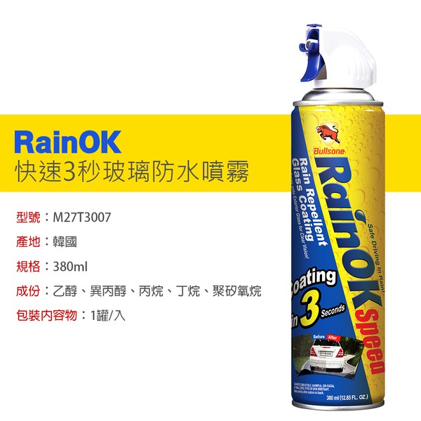 勁牛王 Bullsone RainOK快速3秒玻璃撥水鍍膜 380ml 玻璃鍍膜 撥水劑 免雨刷 防撥水 安全帽撥水