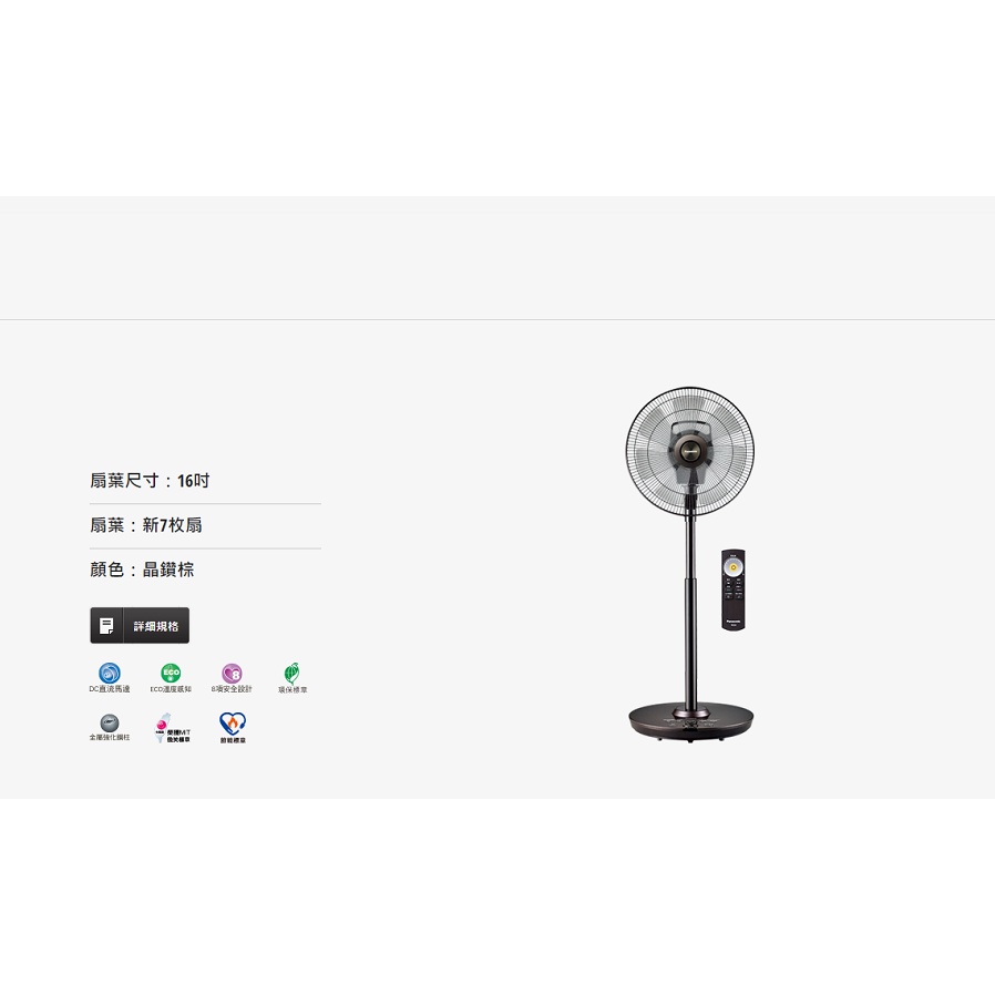 Panasonic 國際牌 16吋 F-H16GND-K七片扇葉ECO智能溫控清淨負離子DC立扇(附遙控器)