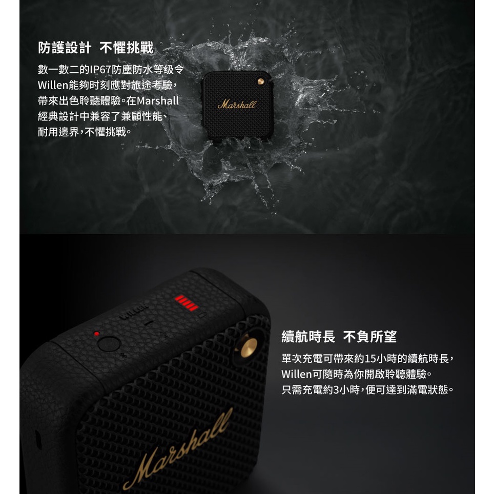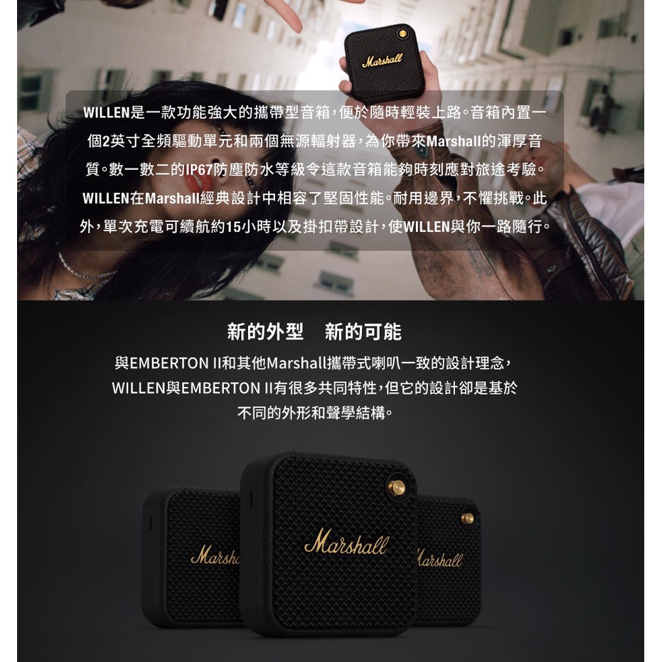 Marshall WILLEN II 現貨 (歲末促銷) 蝦幣10%回饋 攜帶式藍牙喇叭 藍牙喇叭 喇叭 台灣公司貨