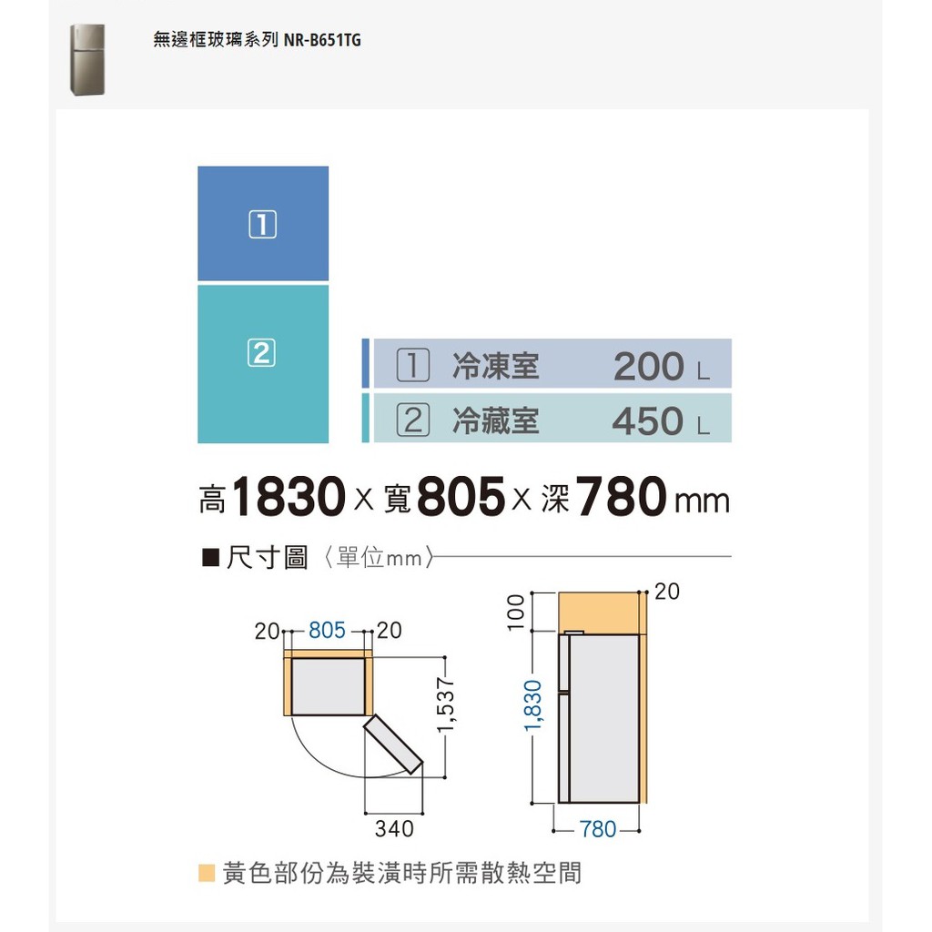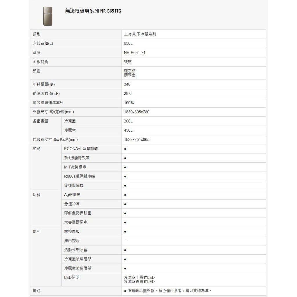 Panasonic 國際牌 650公升 NR-B651TG 兩門無邊框玻璃冰箱 雙門電冰箱 台灣公司貨 領券再折