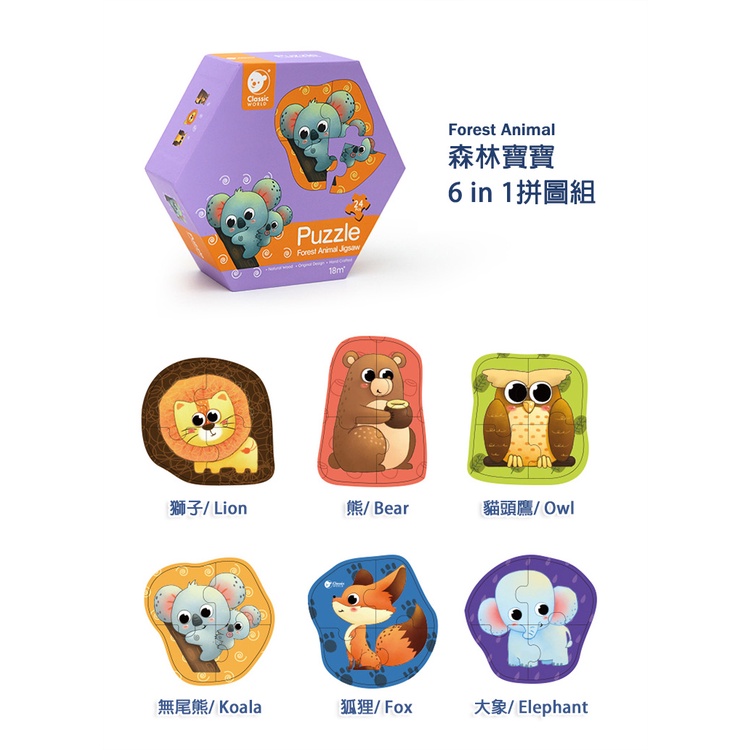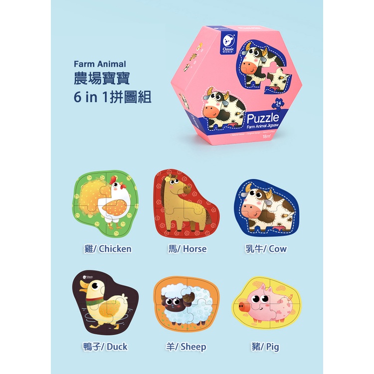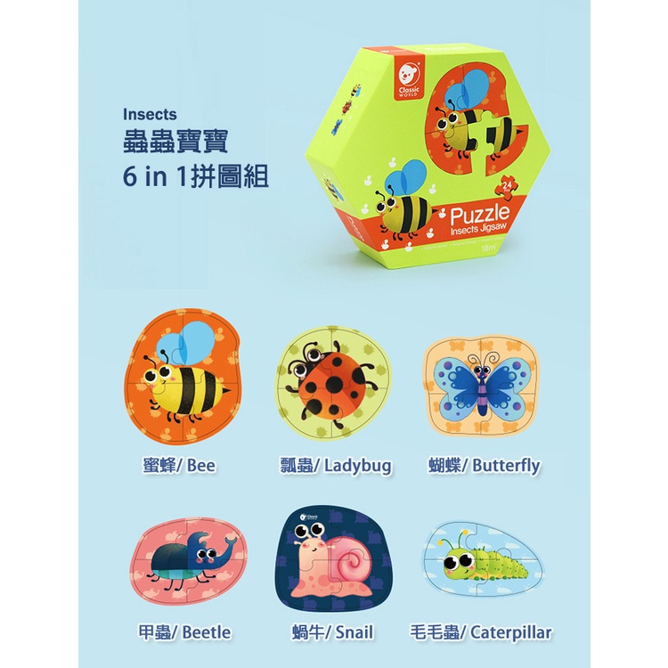 【德國 classic world 客來喜經典木玩】主題寶寶6in1拼圖組/六款主題可選(24pcs)