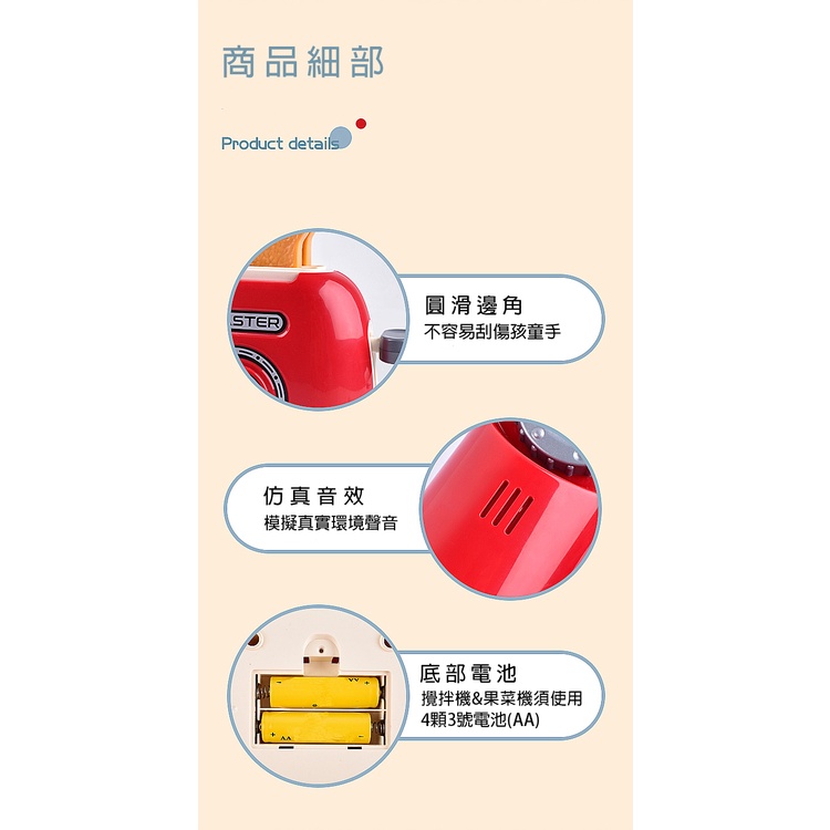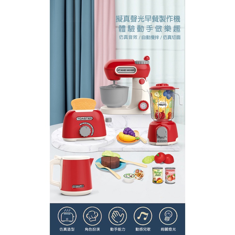 【Hi-toys】兒童擬真早餐系列廚房組(電動攪拌機+果菜機+烤麵包機+茶水壺)/家家酒玩具