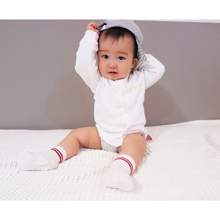 hello mika 米卡 精梳棉嬰幼兒提花長袖前開扣上衣 ( 白色)