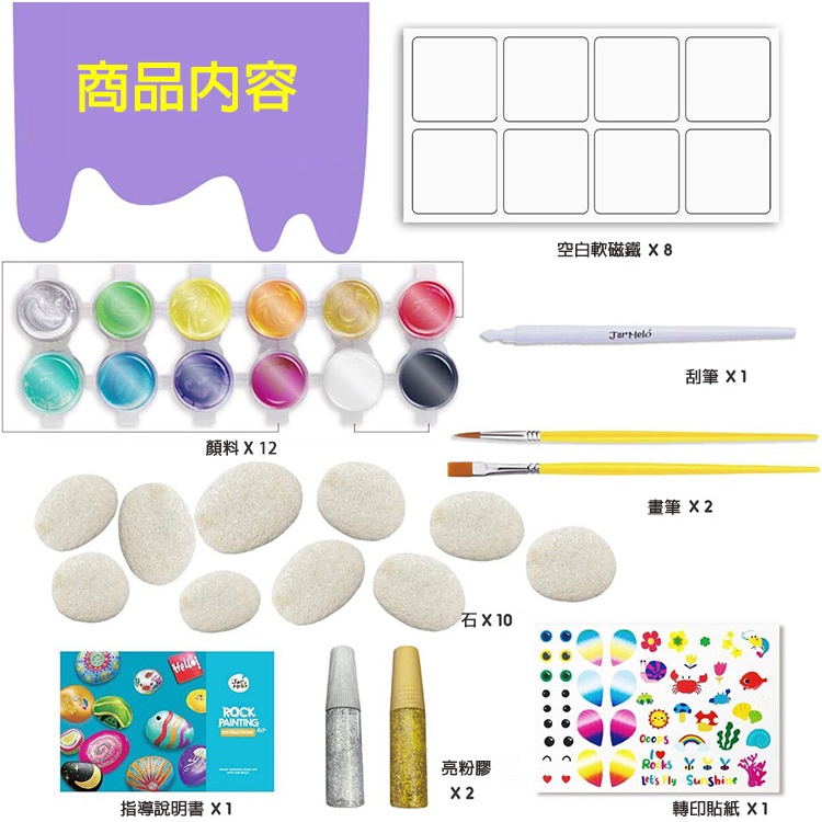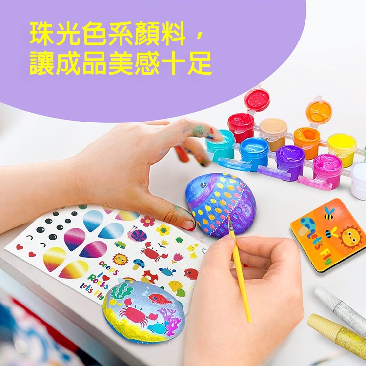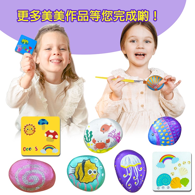 【JarMelo 原創美玩】兒童創意繪畫-石頭珠光彩繪(附轉印貼紙)