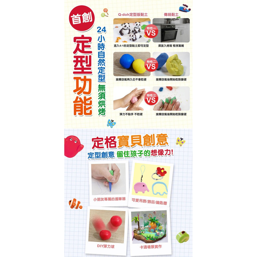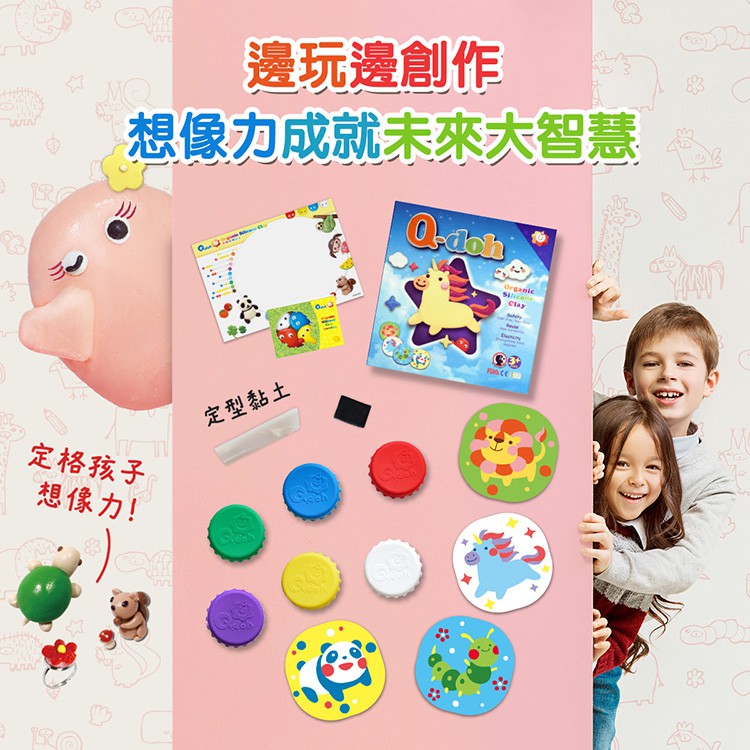 【Q-doh】 魔法有機矽膠黏土6色創作板組(台灣製/可定型)