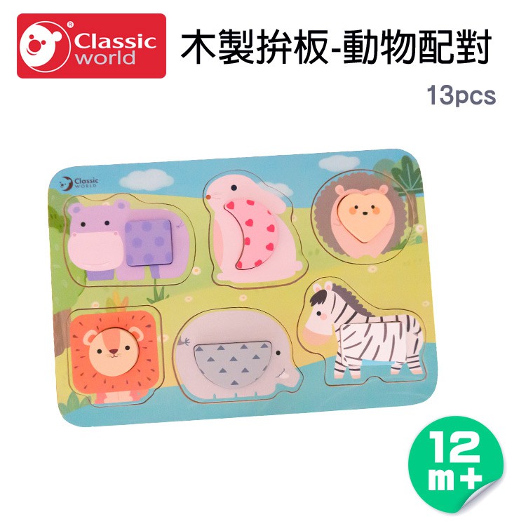【德國 Classic world 客來喜經典木玩】木製拚板-動物配對