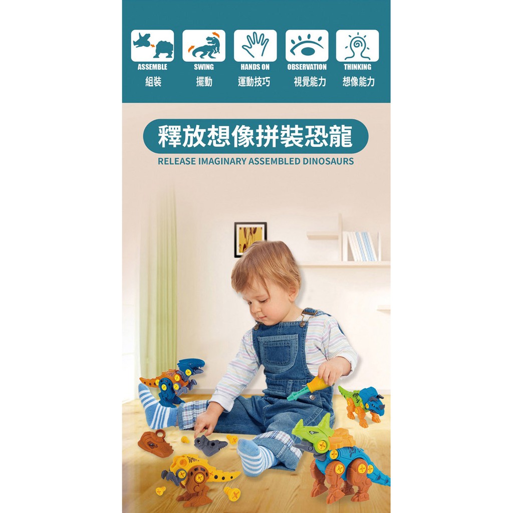 【Hi-toys】益智DIY螺絲拆裝恐龍4入組(暴龍、迅猛龍、三角龍、尖角龍)