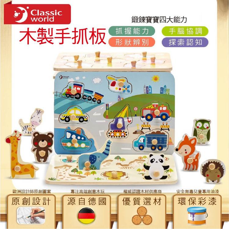 【德國 classic world 客來喜經典木玩】木製手抓板-開心牧場