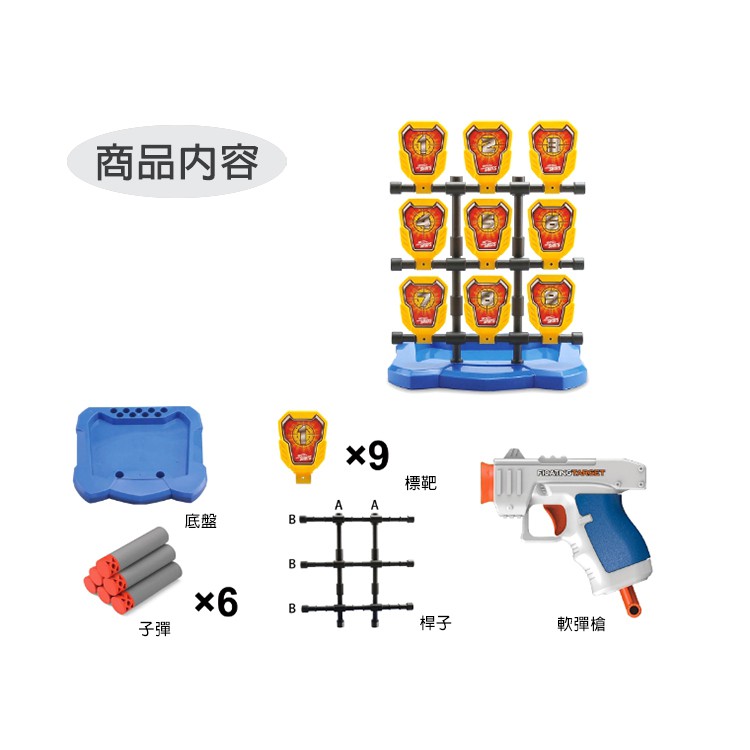 【Hi-toys】懸掛九宮格標靶+安全軟彈槍遊戲套組 /互動射擊玩具