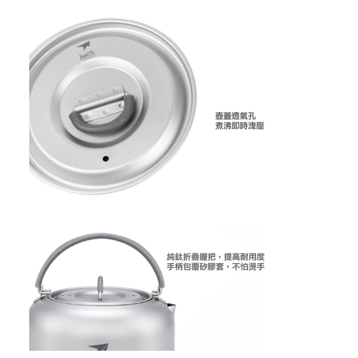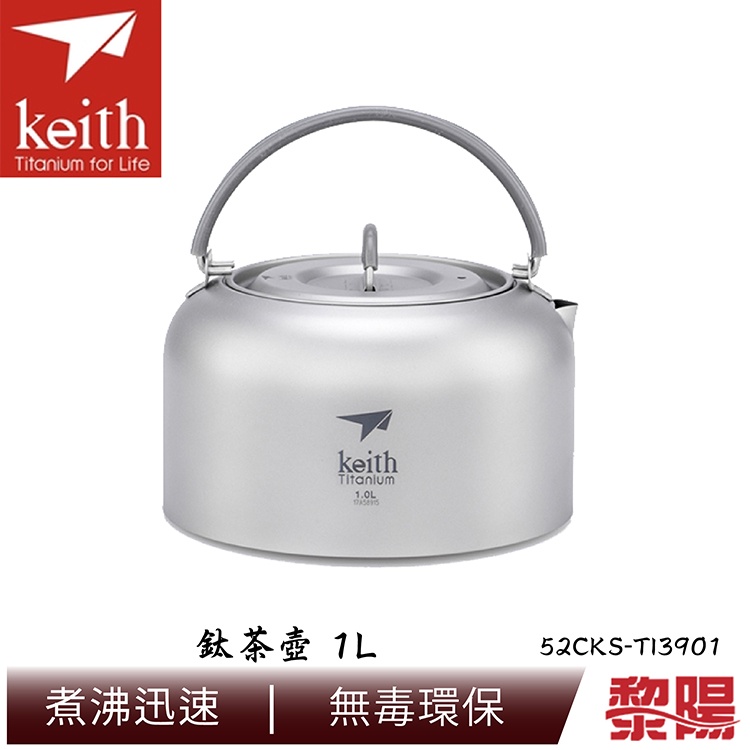 KEITH 鎧斯 鈦茶壺 1L 附收納網袋 折疊收納/好攜帶/茶具/鈦茶壺/登山露營/郊山健行 52CKS-TI3901