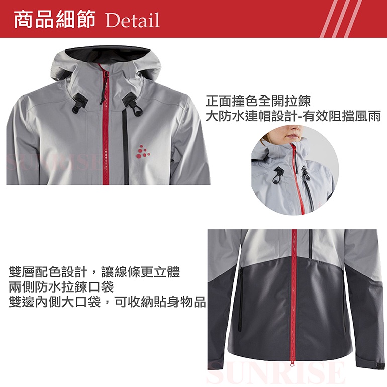 CRAFT 瑞典 1908005 雪地防水連帽外套 女款 (2色) 防風防水/雨衣/大口袋/保暖/路跑 04R08005