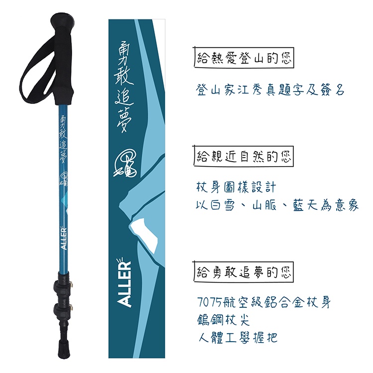 【ALLERx江秀真】勇敢追夢聯名快扣登山杖 直握/登山/健行/限定 87POT202110