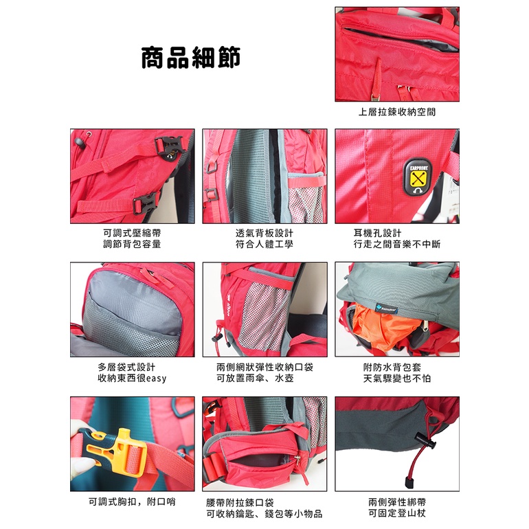 透氣網架背包(雨) 32L (黑、藍、紅) 健行背包/登山背包/休閒旅遊/露營 72CSW11830G