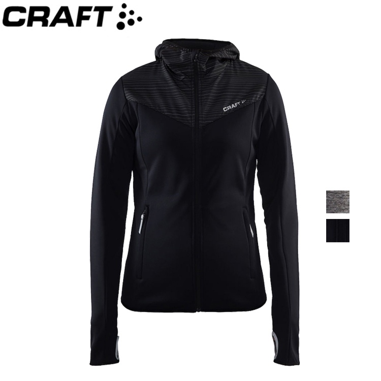 CRAFT 瑞典 1905497 女連帽外套 (黑、灰) 防潑水/反光條/運動/競賽/戶外活動 04R05497