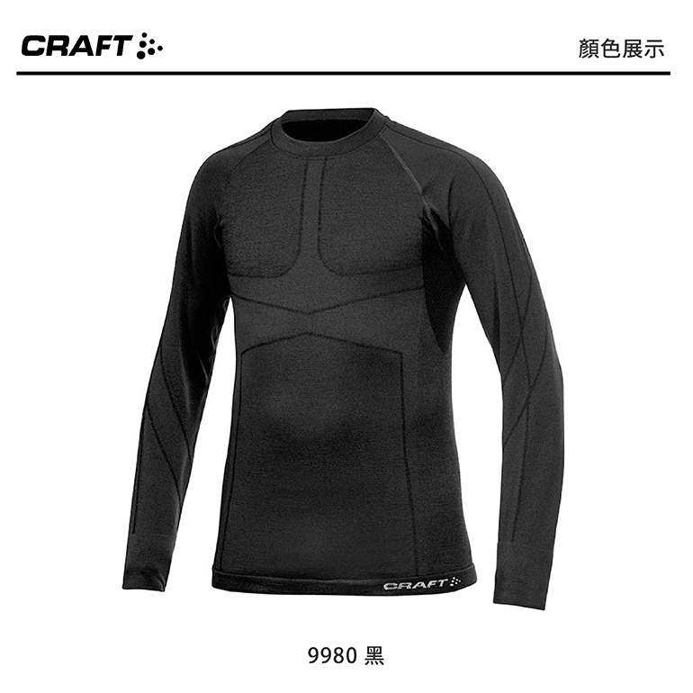 CRAFT 瑞典 長袖圓領羊毛衣 男款 (黑) 透氣排汗/立體剪裁/保暖舒適/登山健行/運動 12R01648