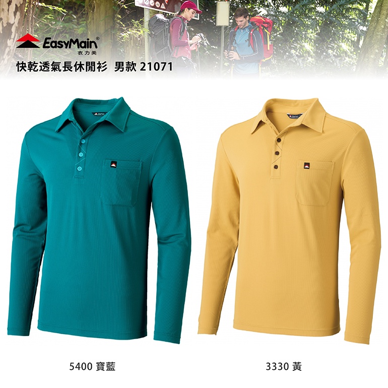 EasyMain 衣力美 快乾透氣長休閒衫 男款 (3色) 排汗快乾/舒適透氣/修身/登山健行/休閒12EMS21071