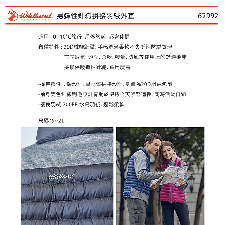 Wildland 荒野 0A62992 彈性針織拼接羽絨外套 男款 (4色)防絨/輕量透氣/防風保暖02W0062992