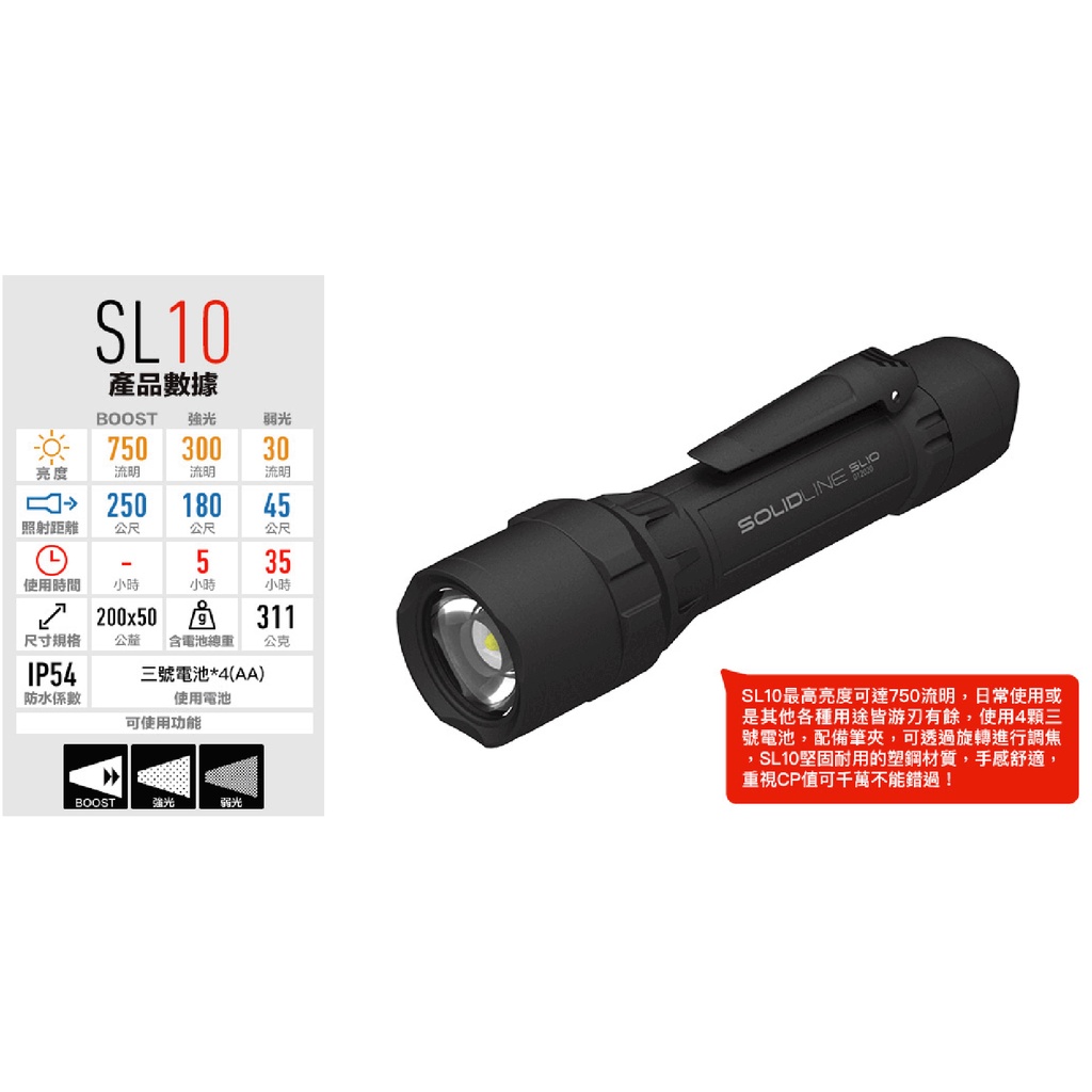 SOLIDLINE 塑鋼手電筒 SL10 750流明 戶外/露營/手電筒 82LE502234