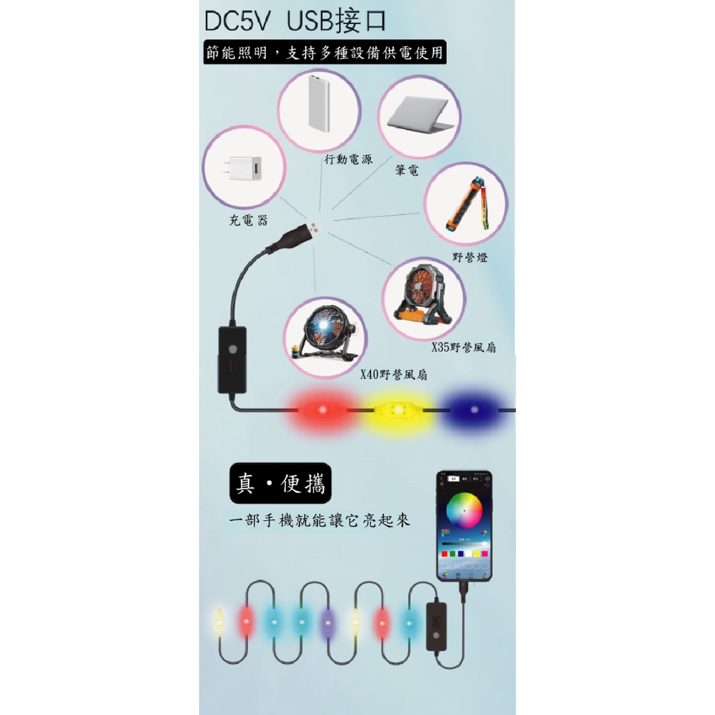 露營音樂 LED 防水幻彩燈串 露營/戶外/旅遊/燈串/節日裝飾 80CBZF10C