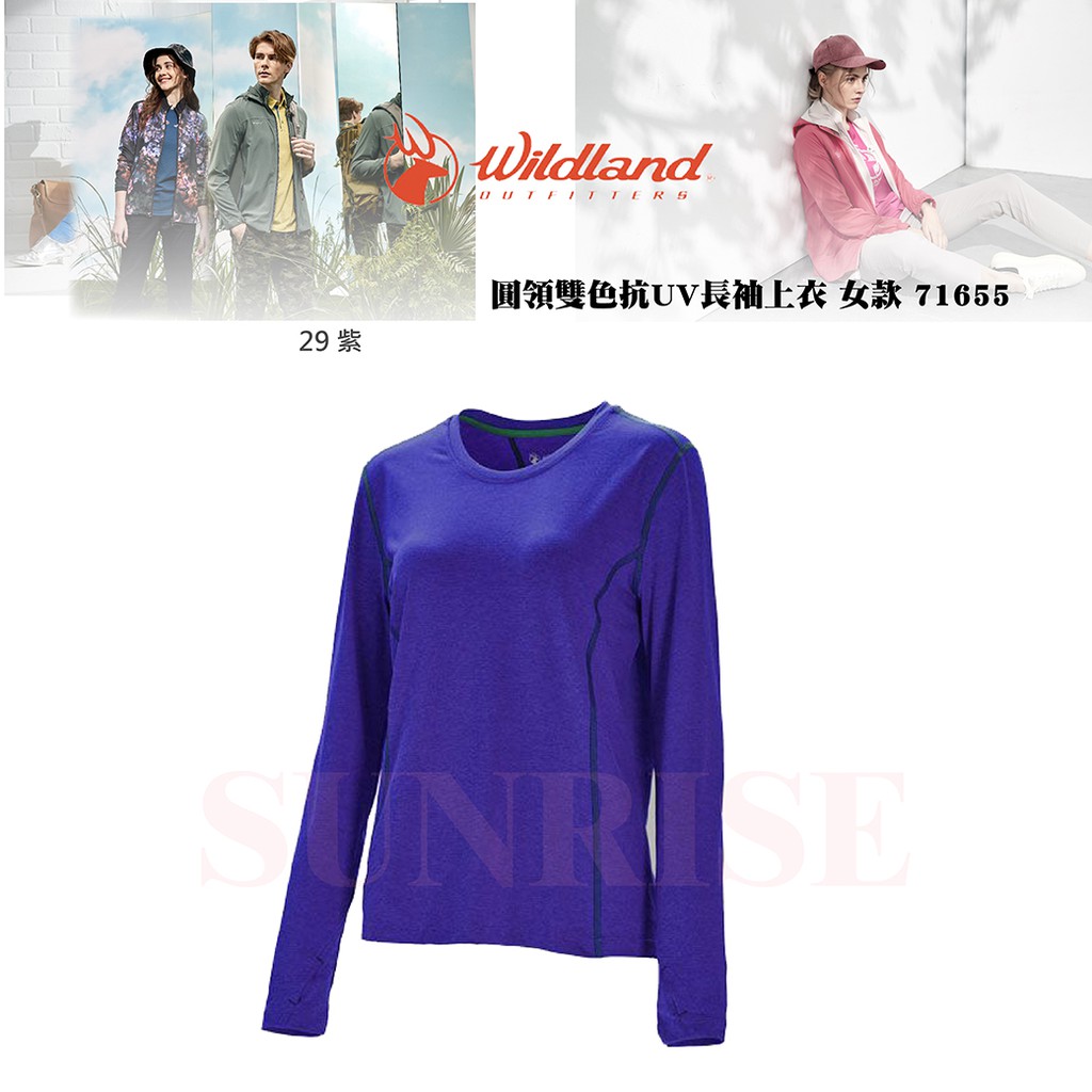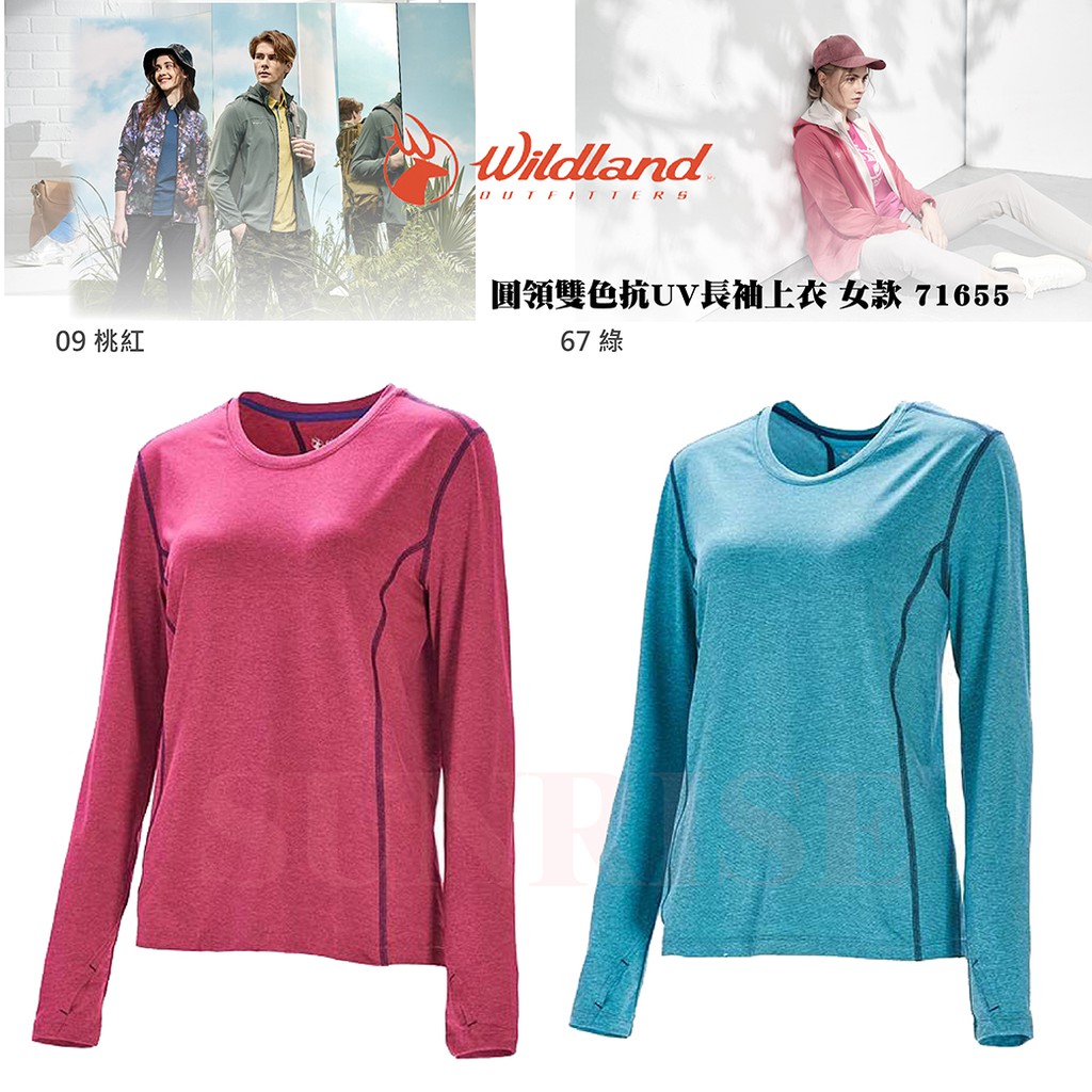 Wildland荒野 圓領雙色抗UV長袖上衣 女款 (三色) 四向彈性/抗UV/3M吸濕快排/休閒登山11W71655