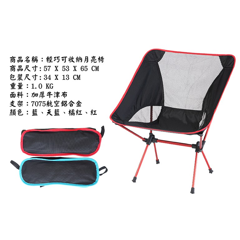 【黎陽】輕巧可收納月亮椅 (藍、天藍、橘紅、紅) 耐用/高強度/輕量好收納/露營烤肉釣魚 54CFY7009