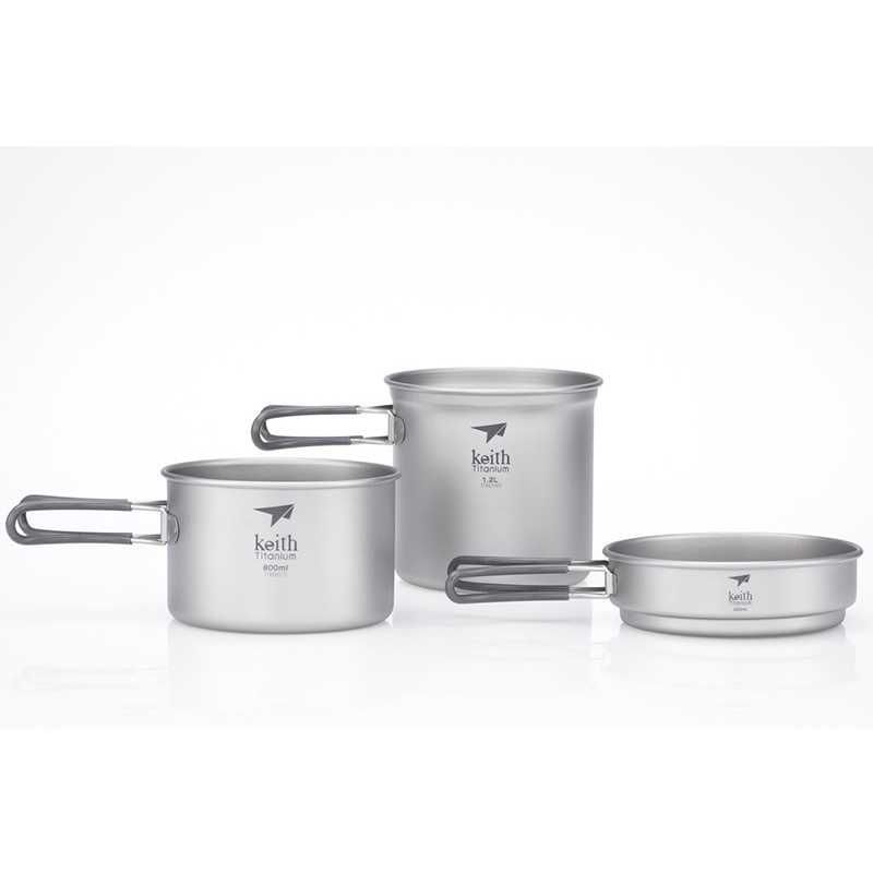 Keith 鎧斯 純鈦折疊鍋組附收納袋 400ml +800ml+1200ml 折疊收納/登山露營51KEITI6014