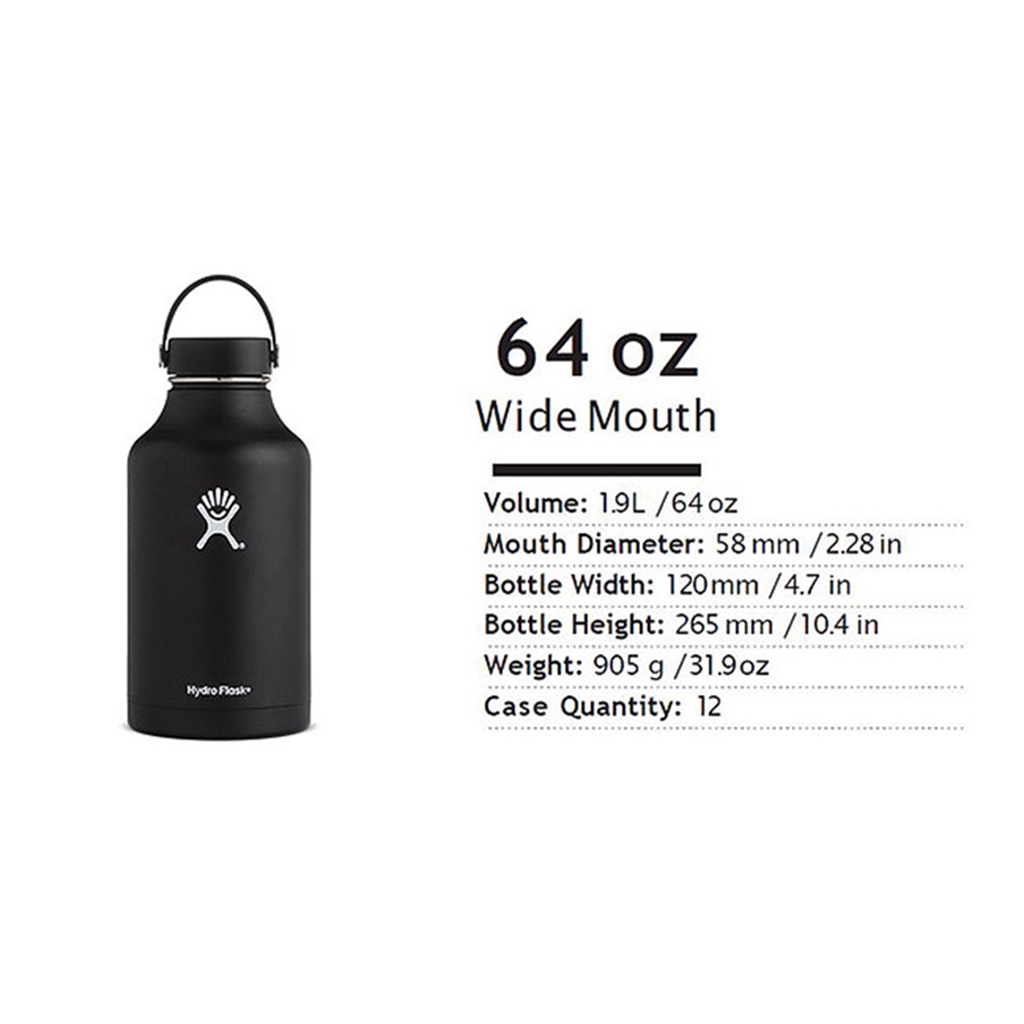 Hydro Flask 美國 64OZ/1892ML 寬口不銹鋼保溫瓶 (黑) 保冷/不含雙酚A 52HF64TS