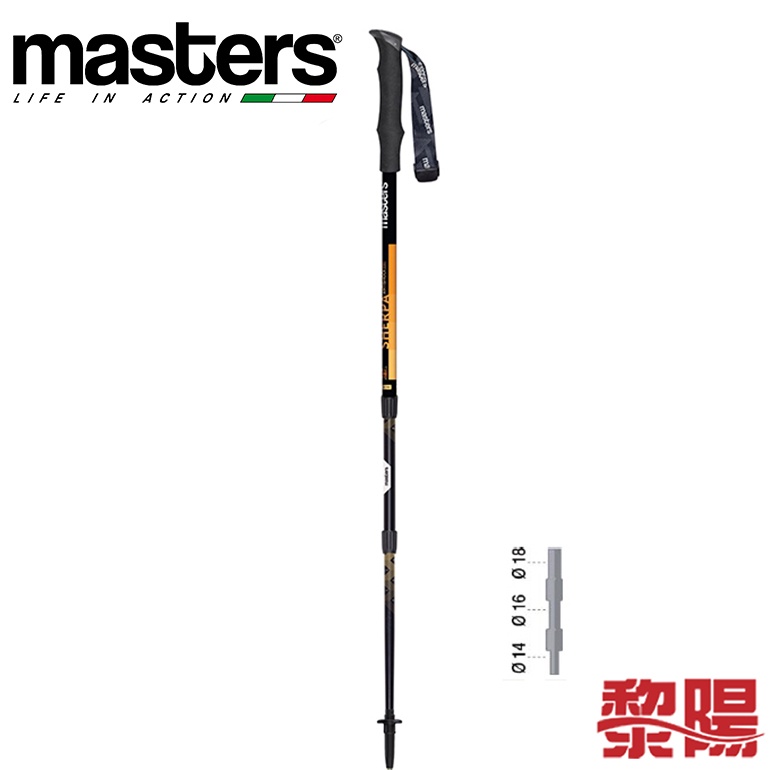 MASTERS 義大利 MS0814 SHERPA CSS 登山杖(超輕避震) 黑橘 登山杖 三節/直握把/鋁合金
