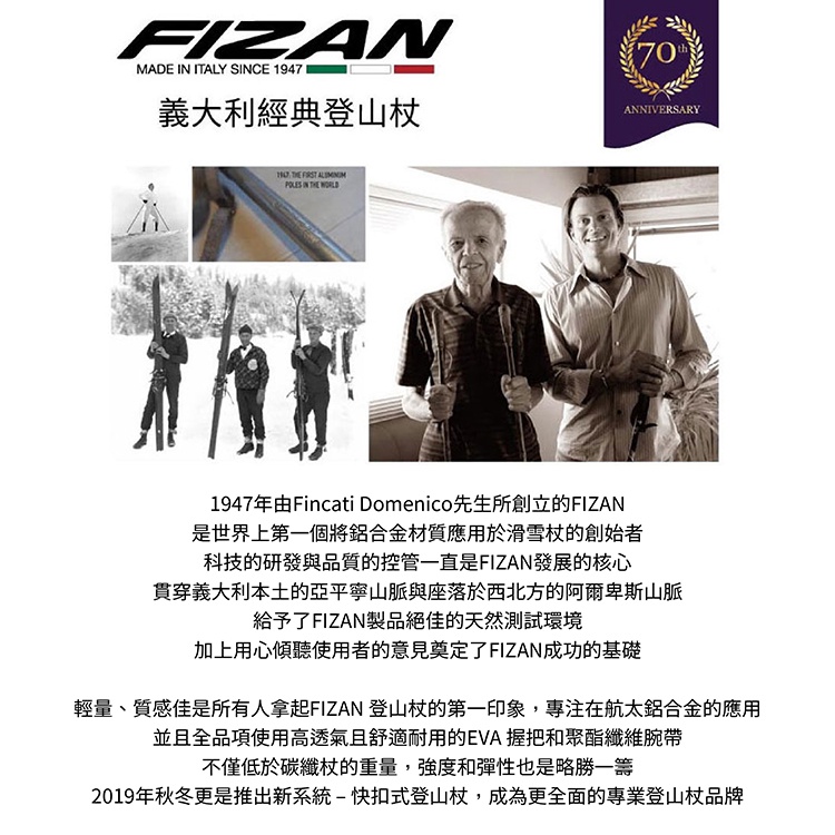 FIZAN 義大利 超輕三節式健行登山杖(多色) 兩入 輕量/鋁合金 87FZ2