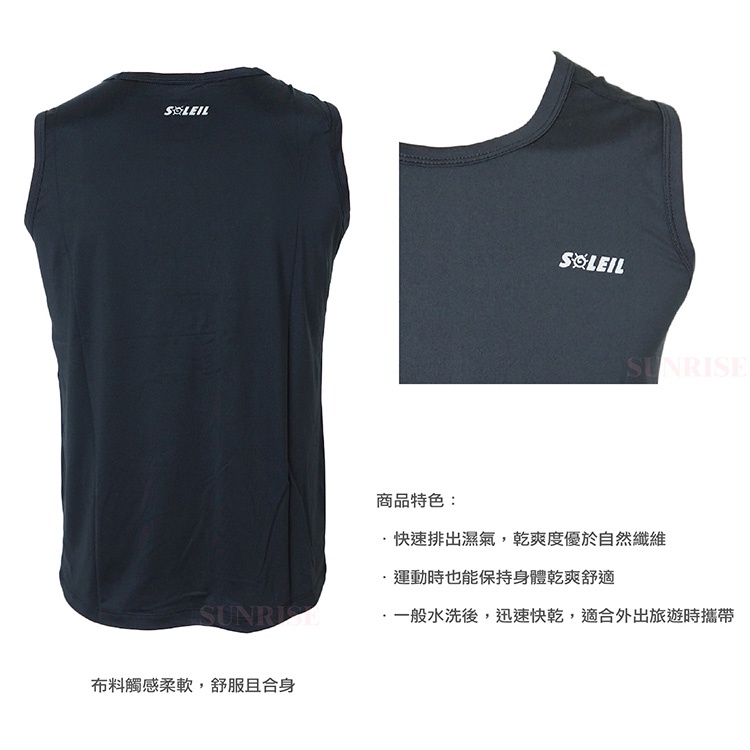SOLEIL 男排汗透氣快乾背心 (黑、灰) 快速排濕/快乾輕盈/台灣製造MIT 10CWR6V011