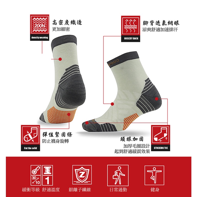 ZEALWOOD 賽樂 銀纖維排汗運動襪 (黑紅、淺灰) 排汗/透氣/男女適用/吸濕快乾 44PCZ18004