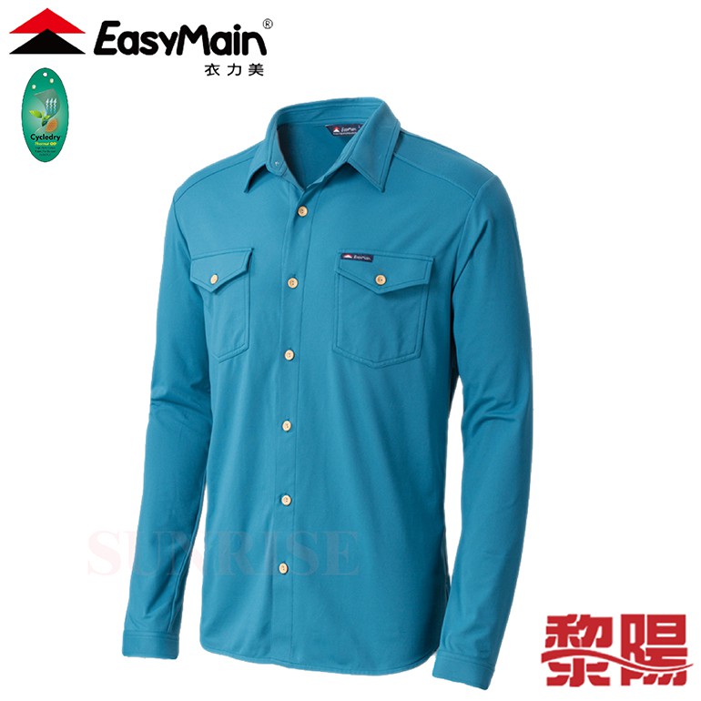 EasyMain 衣力美 輕暖透氣快乾休閒襯衫 男款 (寶藍) 內磨毛布料/仿木鈕扣高海拔登山 13EMS19069