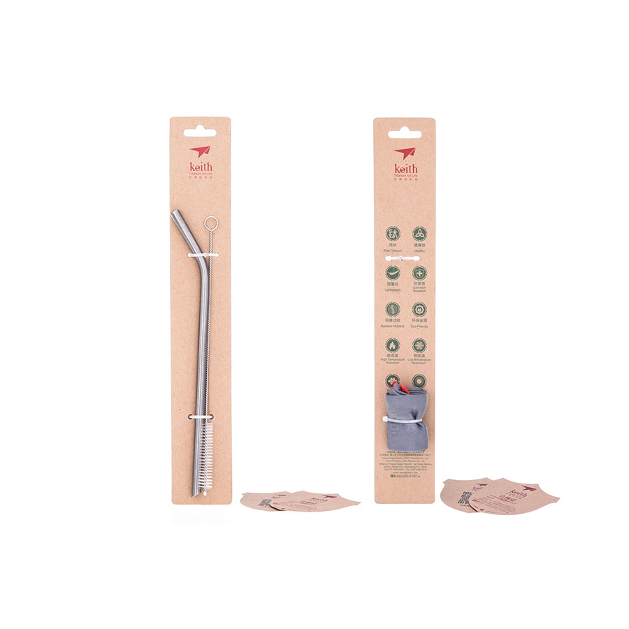 Keith 鎧斯 純鈦環保斜口彎吸管 7mm 附清潔刷 附收納袋 環保吸管/好攜帶/餐具/露營 52KEITI3701