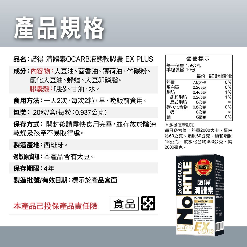 【NORITLE諾得】清體素OCARB液態軟膠囊EX PLUS(20粒)-9盒