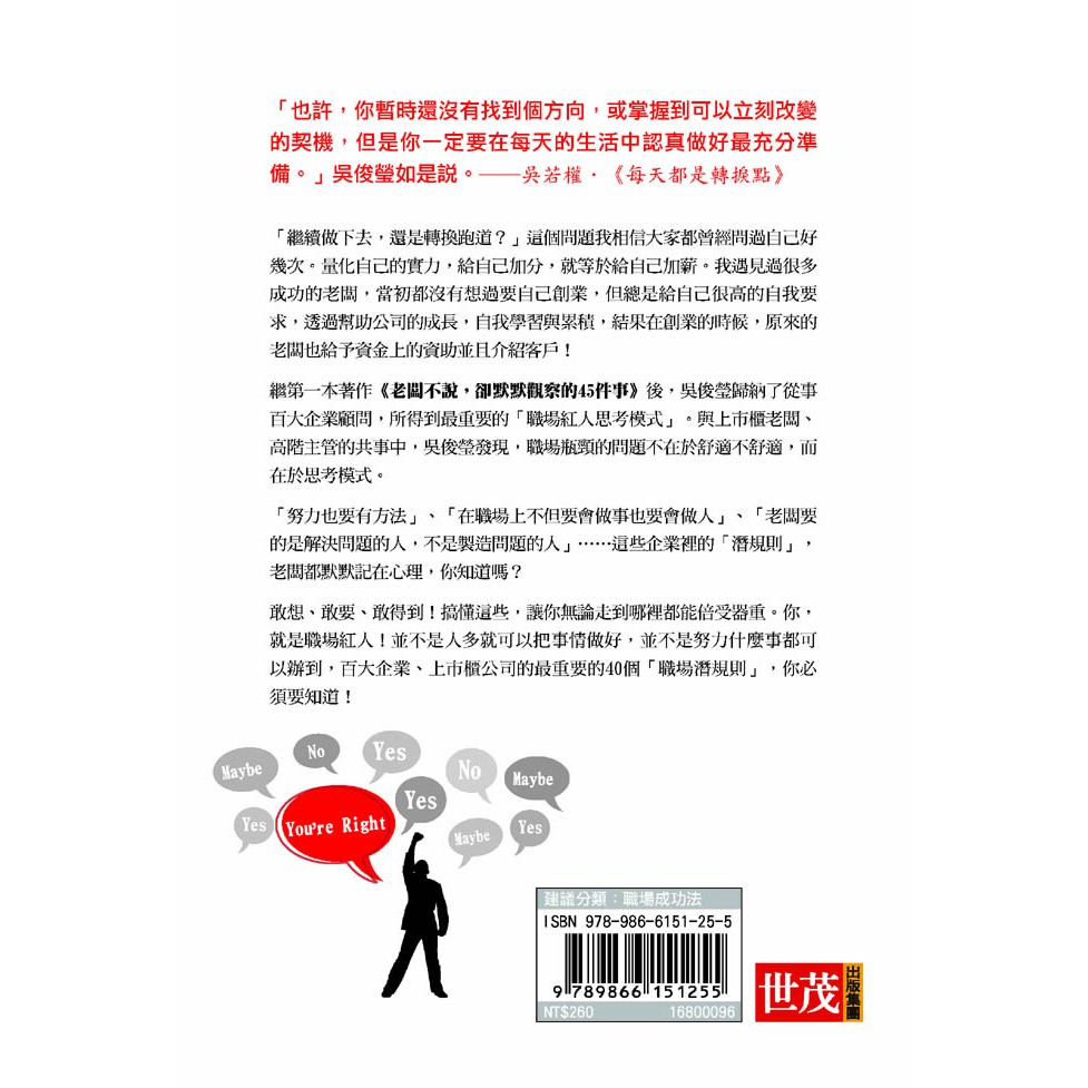 搞懂這些,老闆搶著要:老闆不說的40個職場潛規則 / 吳俊瑩 著/世茂看書網
