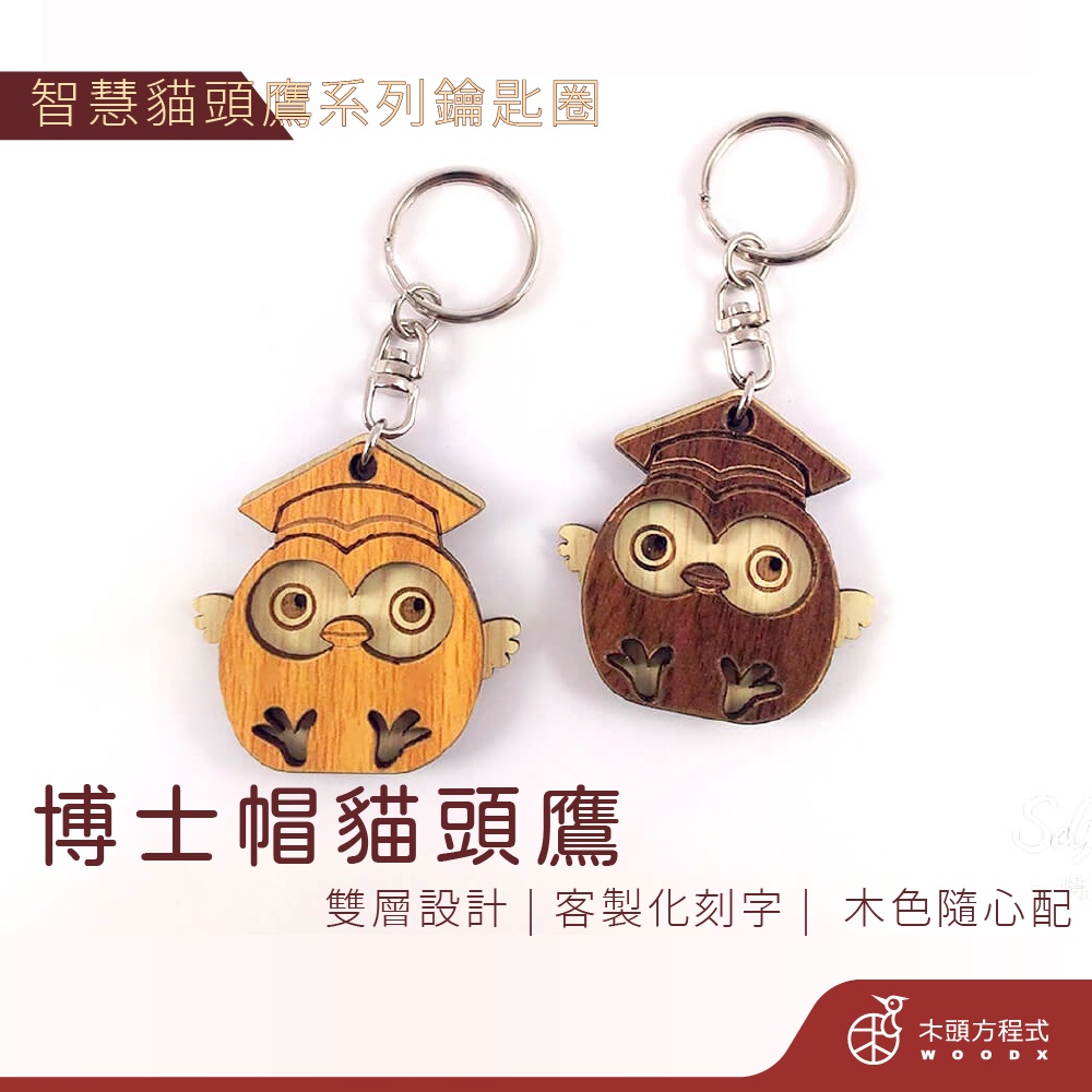 【免費刻字】博士帽貓頭鷹鑰匙圈 現貨 店到店 鑰匙圈吊飾 客製化 情人節 客製化吊飾 生日禮物 情侶鑰匙圈 木雕