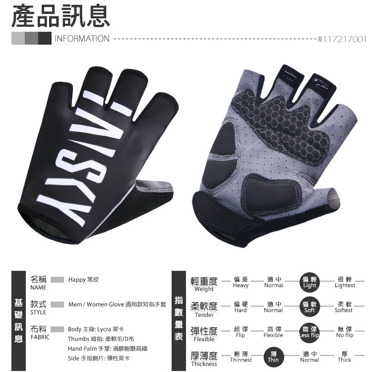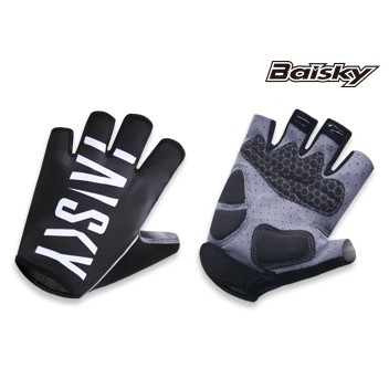 BAISKY 百士奇自行車手套 黑皮 半指手套