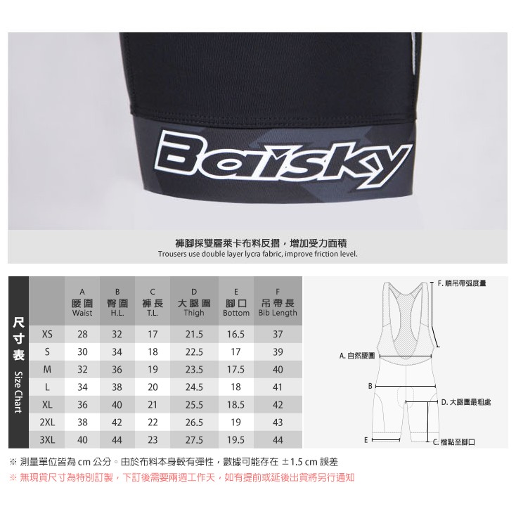 BAISKY百士奇 自行車褲 黑騎 男款吊帶短褲 黑 6D座墊