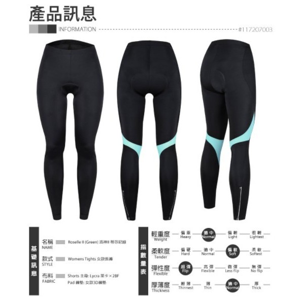 BAISKY 百士奇夏季公路登山慢跑自行車褲排汗吸濕 洛神II 女款長褲 蒂芬尼綠 3D座墊