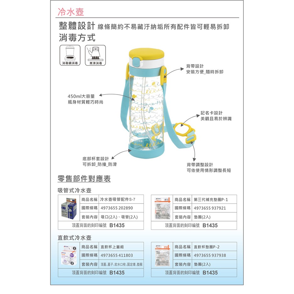 Richell 利其爾|第四代LC 450ml 吸管式冷水壺 - 三款【附背帶】