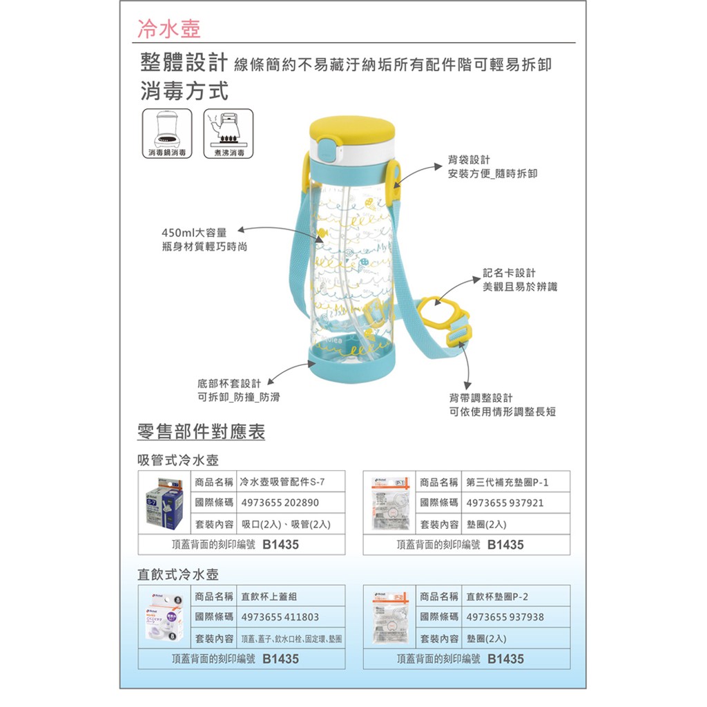 Richell 利其爾|貝克街兩用冷水壺組450ml(全新LC四代水杯系列_內含吸管上蓋&直飲上蓋)