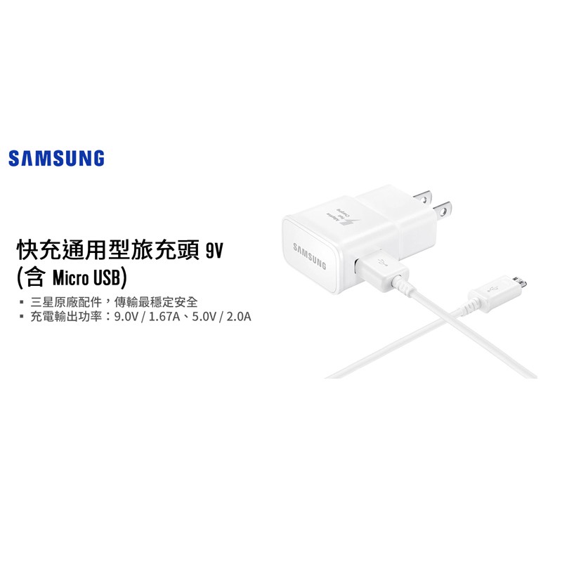 SAMSUNG 15W 快充通用型旅充組 9V/1.67A (Micro USB線 + USB旅充頭) 現貨 廠商直送