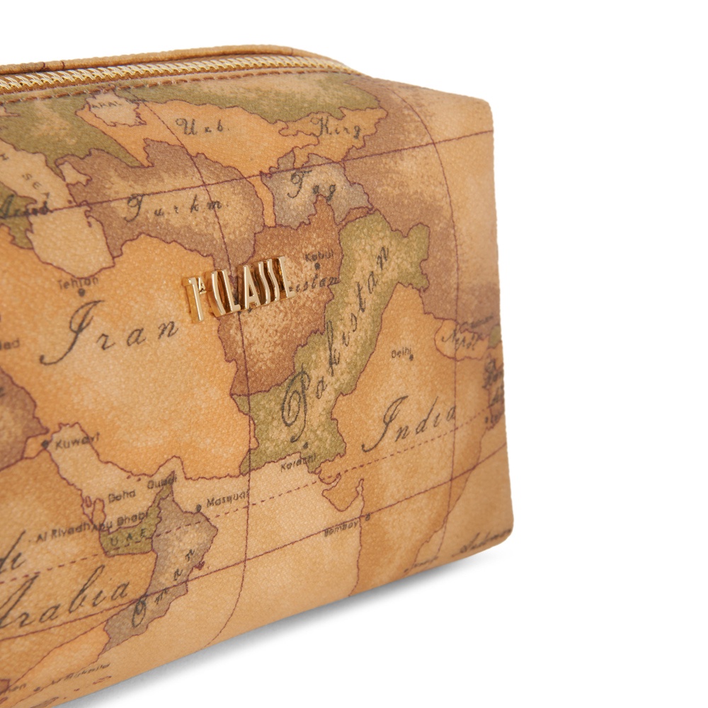 【Alviero Martini 義大利地圖包 】拉鍊筆四方化妝包14cm-地圖黃