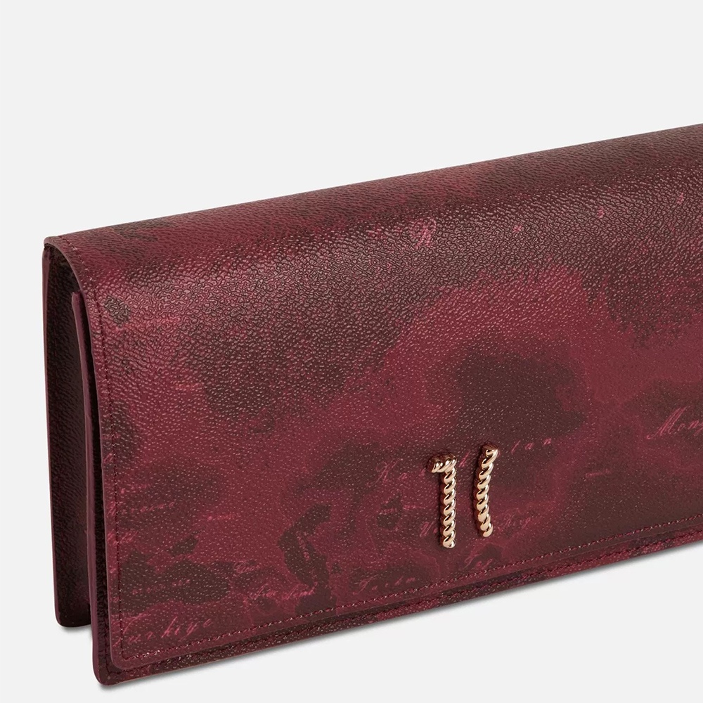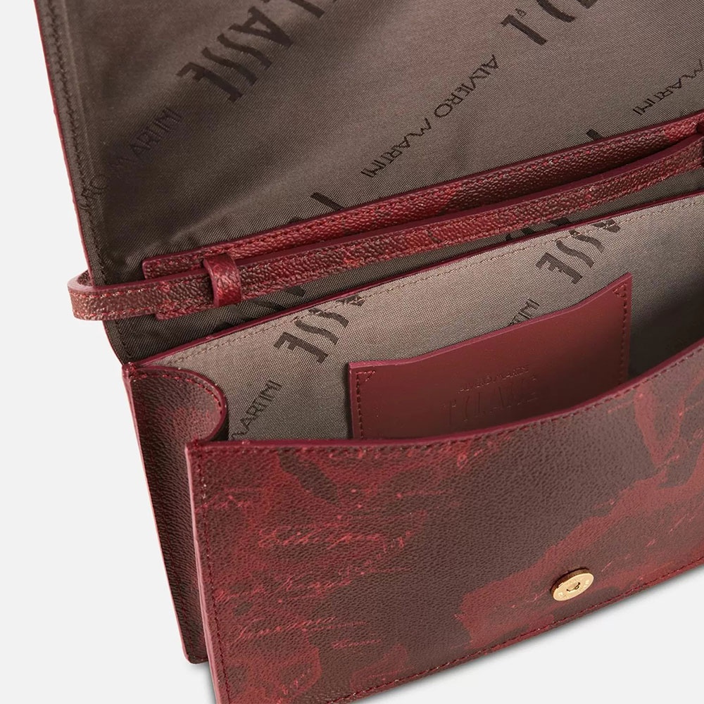【Alviero Martini 義大利地圖包 】復古優雅 Vintage手拿側揹兩用包-地圖酒紅